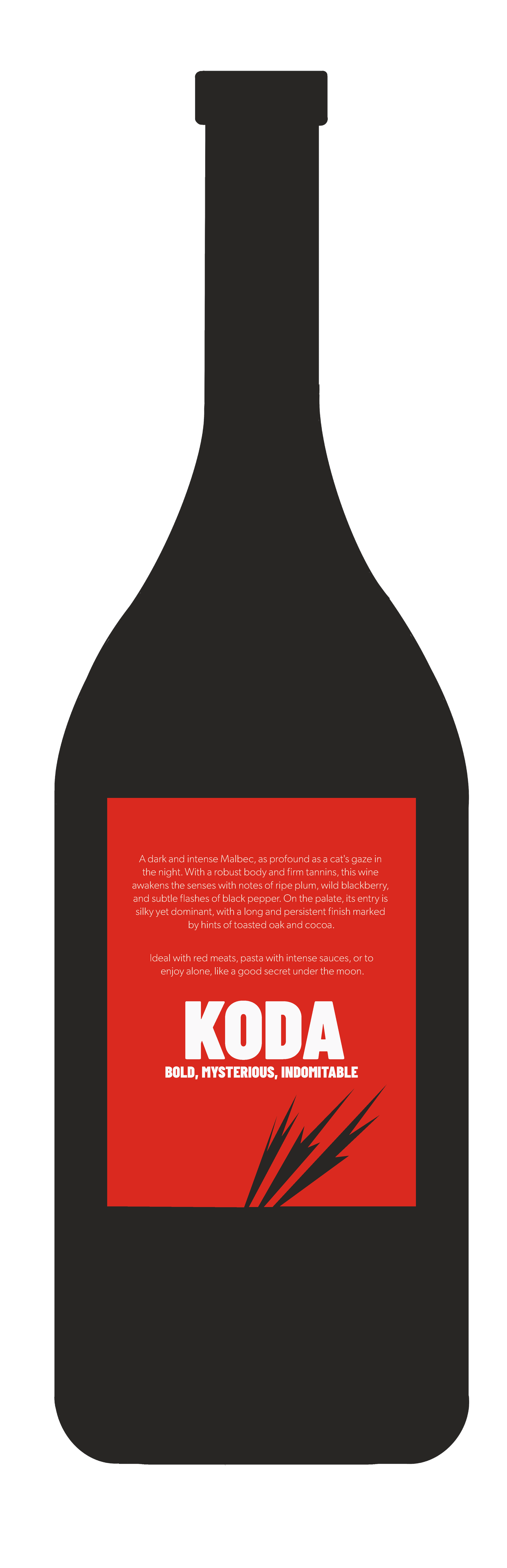 A dark and intense Malbec, as profound as a cat's gaze in the night. With a robust body and firm tannins, this wine awakens the senses with notes of ripe plum, wild blackberry, and subtle flashes of black pepper. On the palate, its entry is silky yet dominant, with a long, lingering finish marked by notes of toasted oak and cocoa.